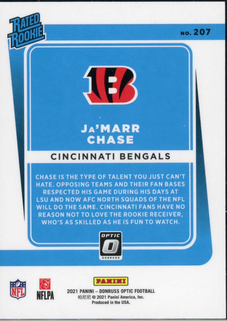 2021 Panini Donruss Optic Ja'Marr Chase Rated Rookie Card RC #207 Bengals Football